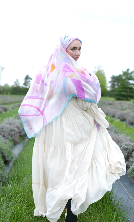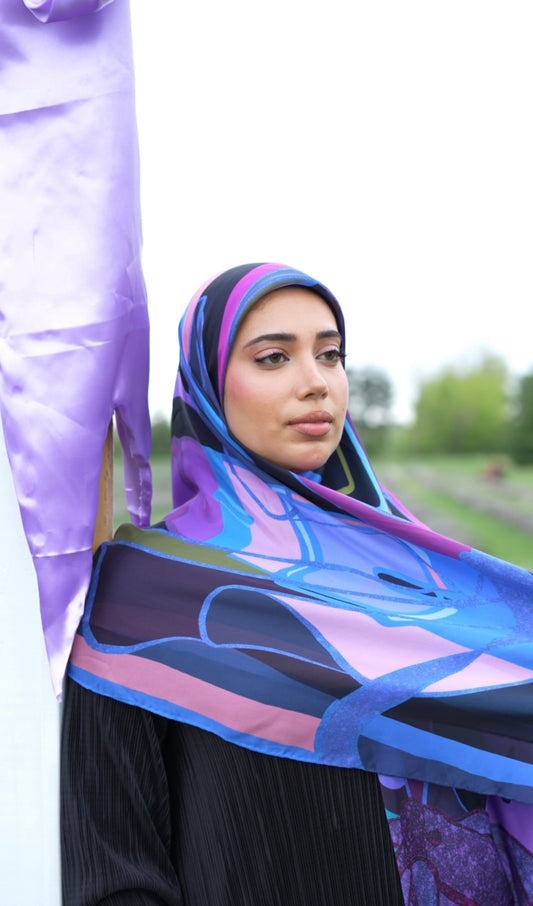 Pure silk scarfs made of luxurious materials with a curated selection of exeptional art.